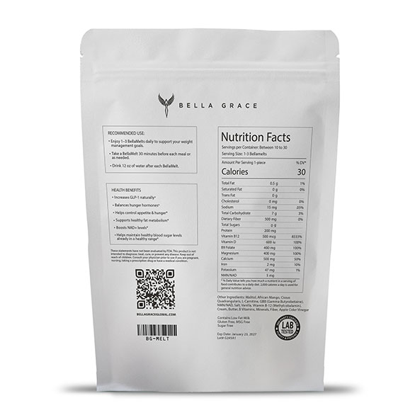 BellaMelt is an indulgent caramel treat powered by potent botanicals and essential nutrients. Each sugar-free melt works naturally with your body to activate GLP-1, helping you feel full faster, stay satisfied, quiet cravings, and burn more calories and brown adipose fat.